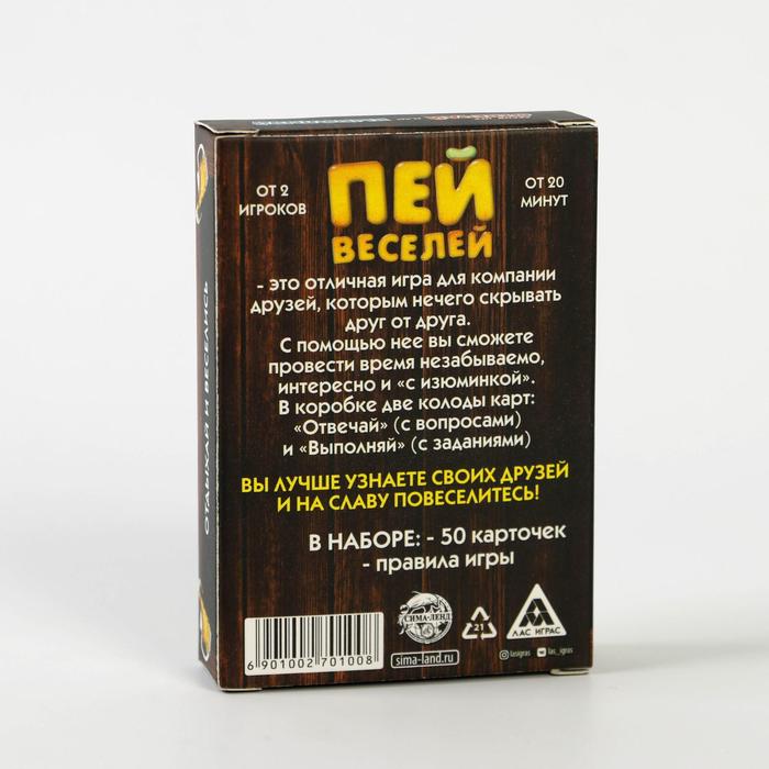 Купить игра для компании "пей веселей" 50 карт от 180 руб. с доставкой до пункта выдачи в Бородино. Интернет магазин ДекаМаркет. Оплата при получении.